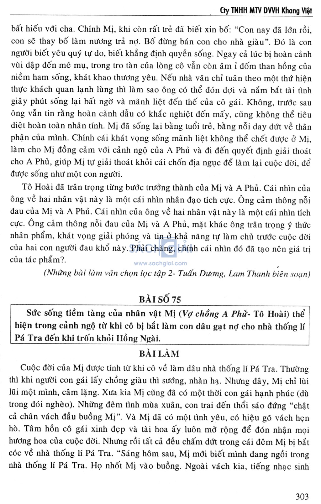 - Chương 5: Đề bài, dàn bài và bài làm tham khảo với các tác phẩm: